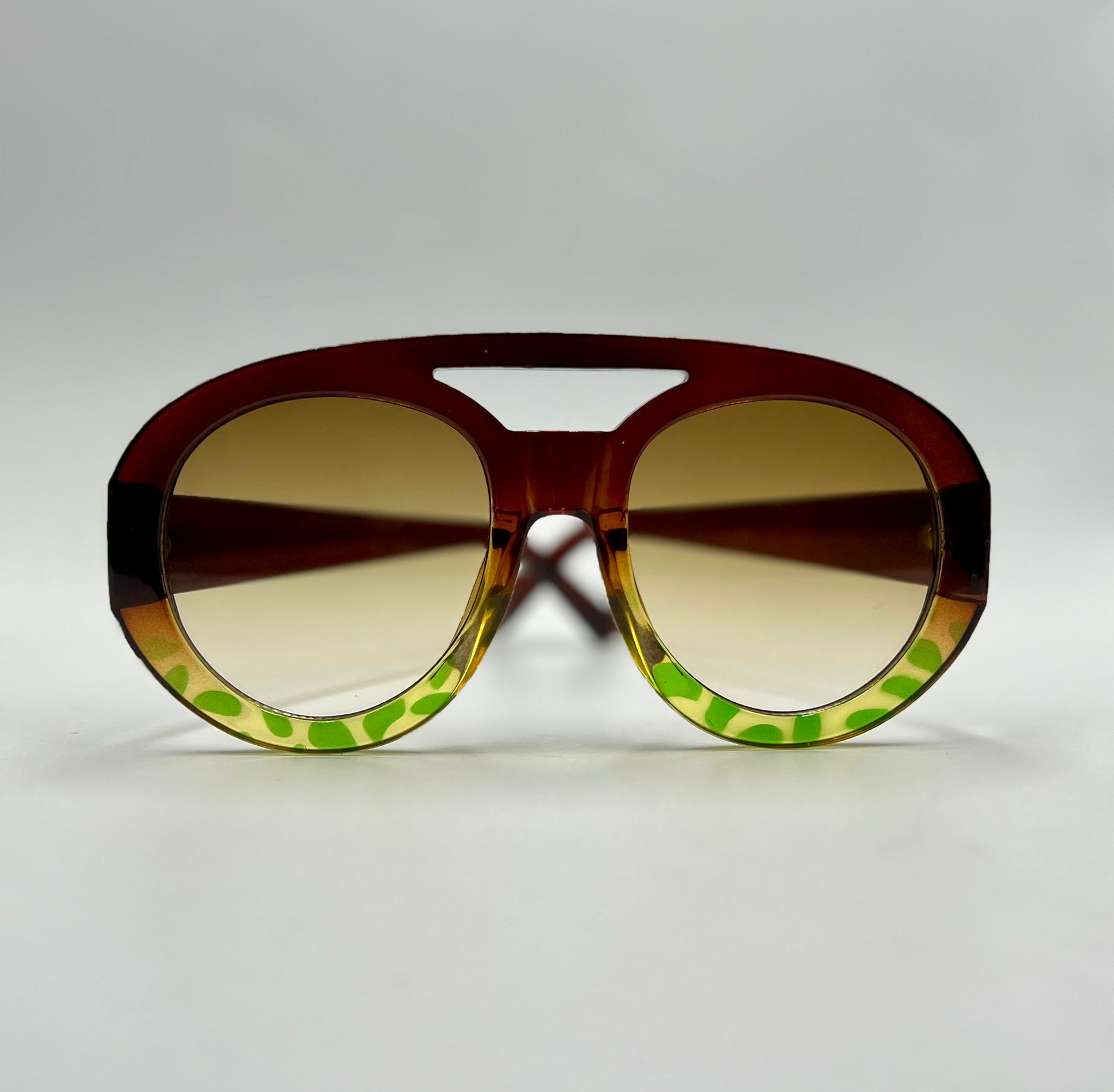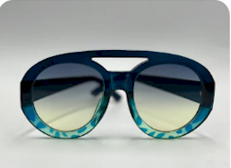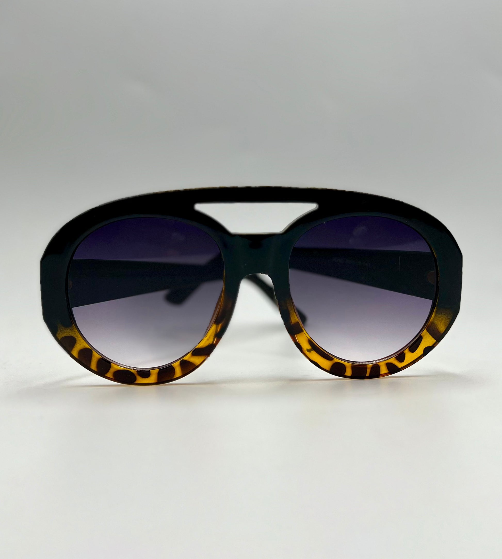 Discover the trendy fashion of Aspen. These chic oversized sunglasses feature a bar frame and gradient color for a stylish look. With the top being black and bottom blue tortoiseshell design, these glasses are perfect for any fashion-forward individual. Elevate your style and protect your eyes with Aspen.